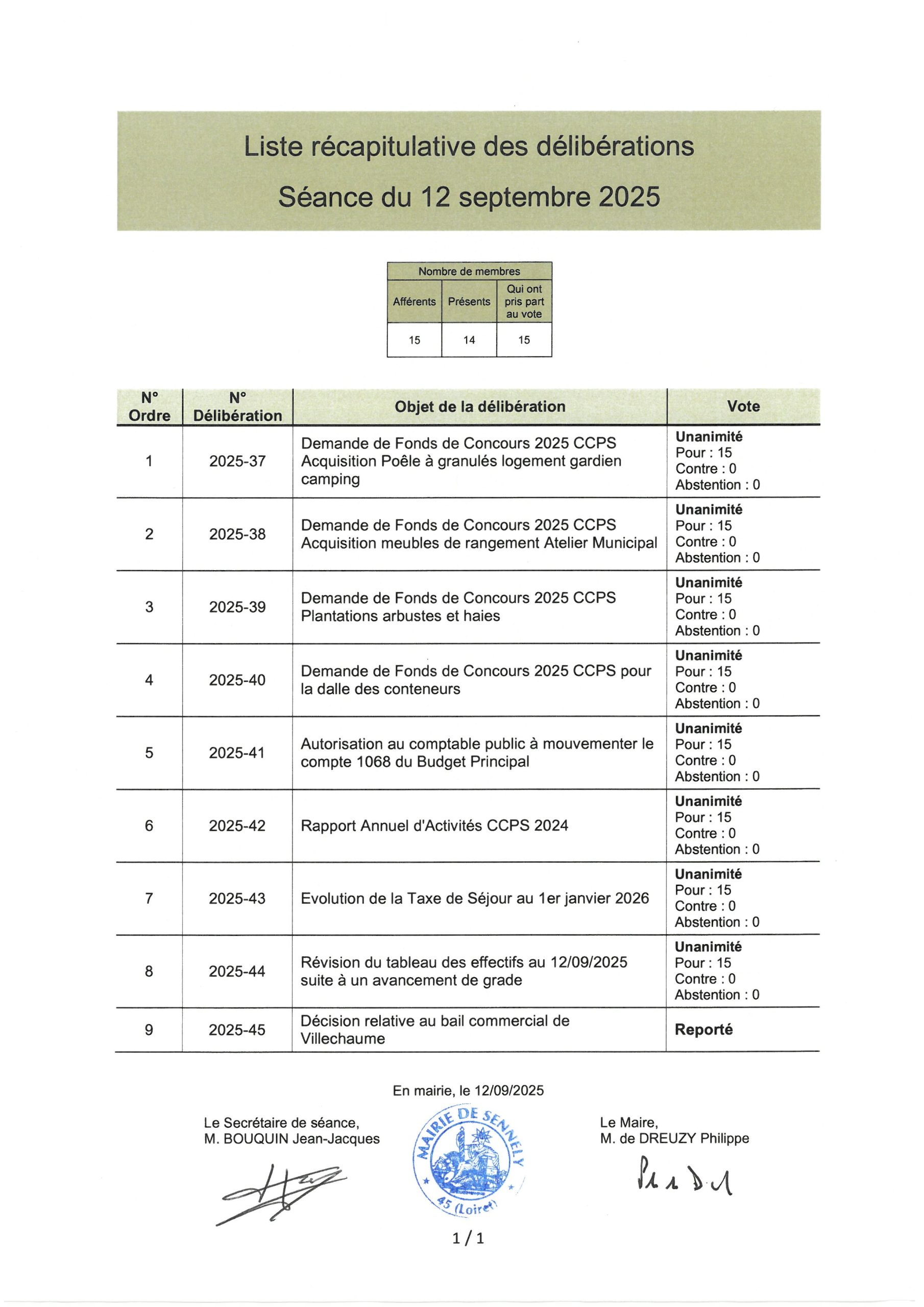 Liste délibérations CM 12/09/2025 Sep 25, 2025 Ci-dessous la liste des délibérations prises au Conseil Municipal du 12 septembre 2025 :