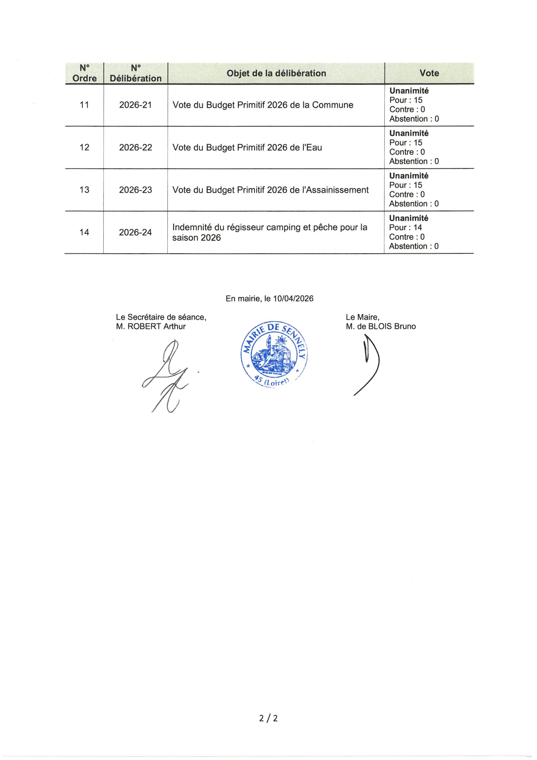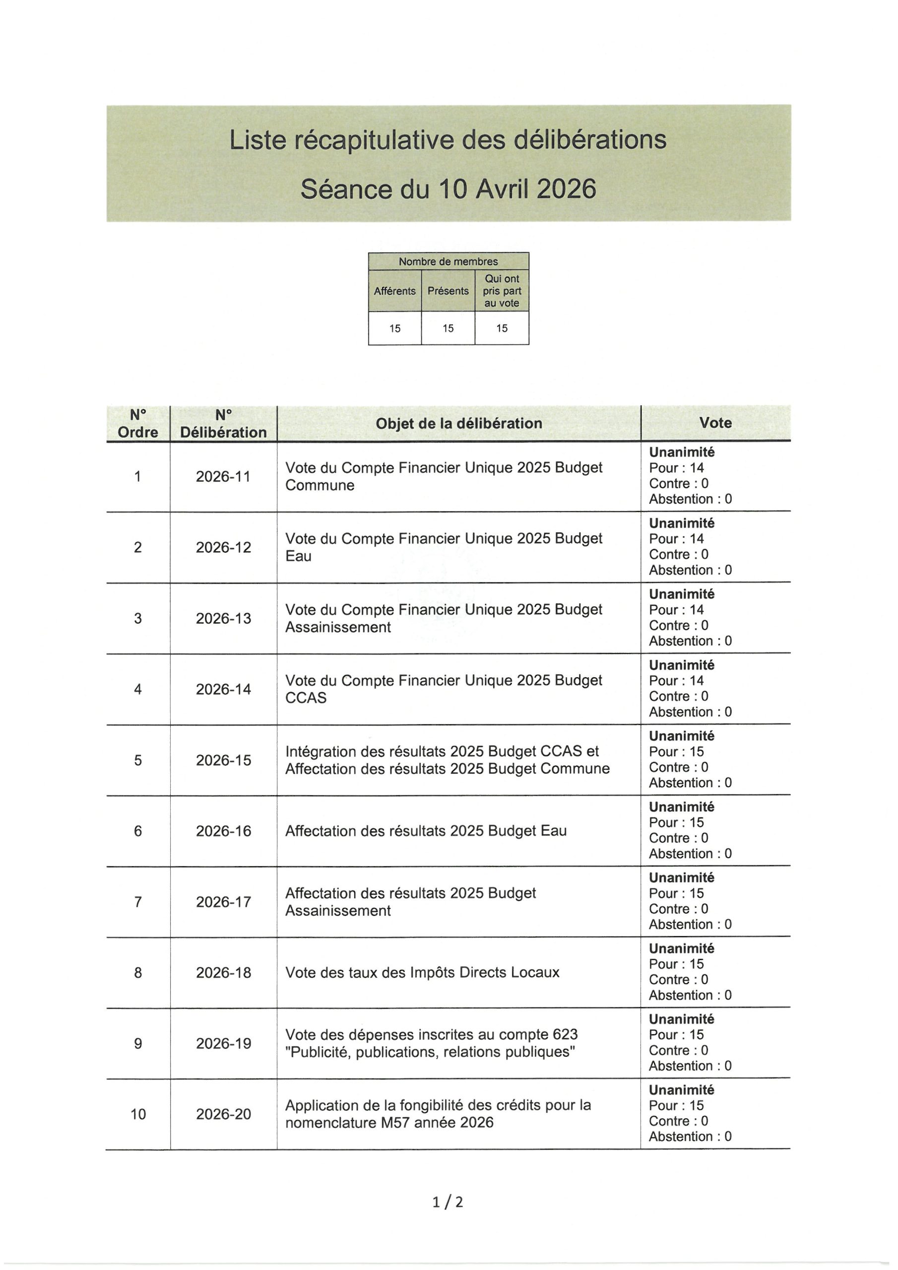Liste délibérations CM 10/04/2026 Avr 16, 2026 Ci-dessous la liste des délibérations prises au Conseil Municipal du 10 avril 2026 :
