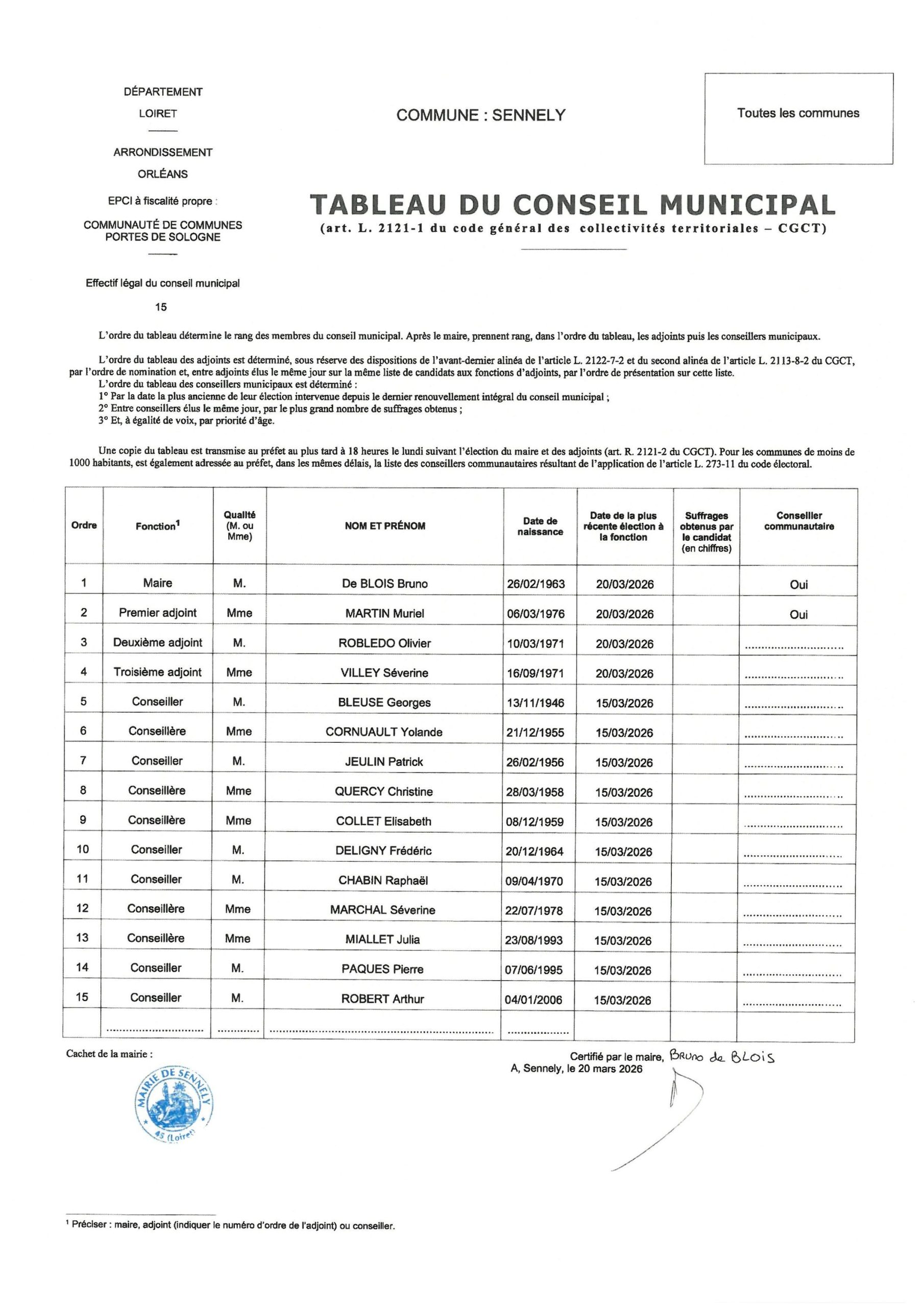 Membres du Conseil Municipal 2026
